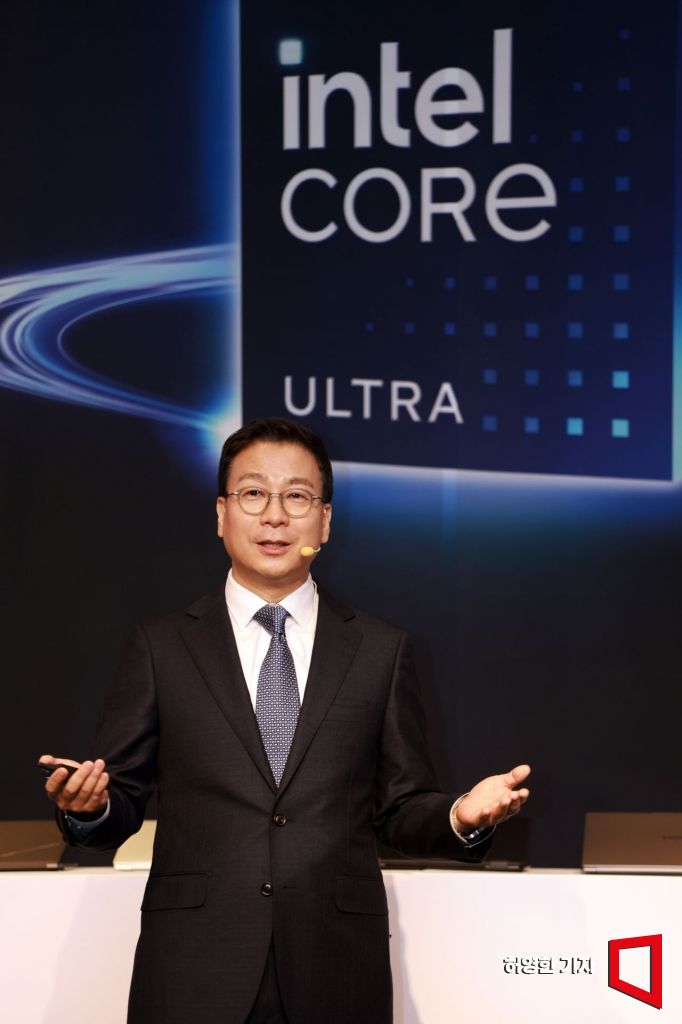 인텔이 28일 서울 여의도 콘래드 호텔에서 개최한 인텔 AI PC 최신 프로세서 출시 간담회에서 배태원 인텔코리아 대표가 인사말을 하고 있다.