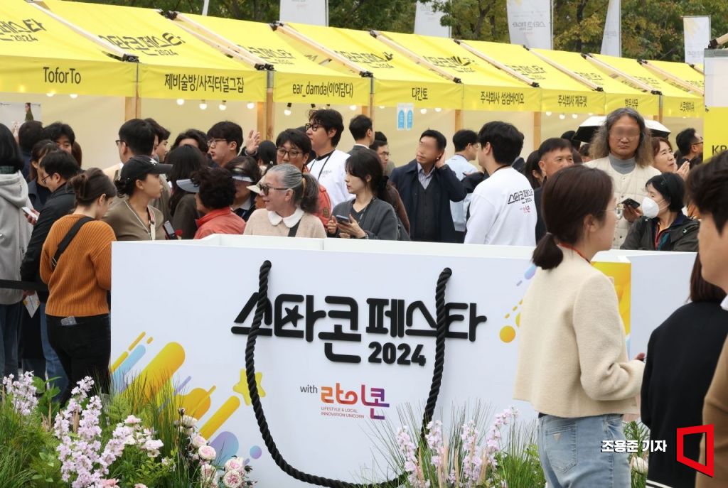 28일 서울 광화문광장 놀이마당에서 열린 '스타콘 페스타 2024'를 찾은 시민들이 소상공인의 우수 제품들을 체험 및 구매를 하고 있다. 31일까지 열리는 이번 행사는 기업가정신과 창의적인 아이디어를 보유한 스타 소상공인을 발굴해 글로벌 대기업으로 육성하는 민관 협력 프로젝트다.