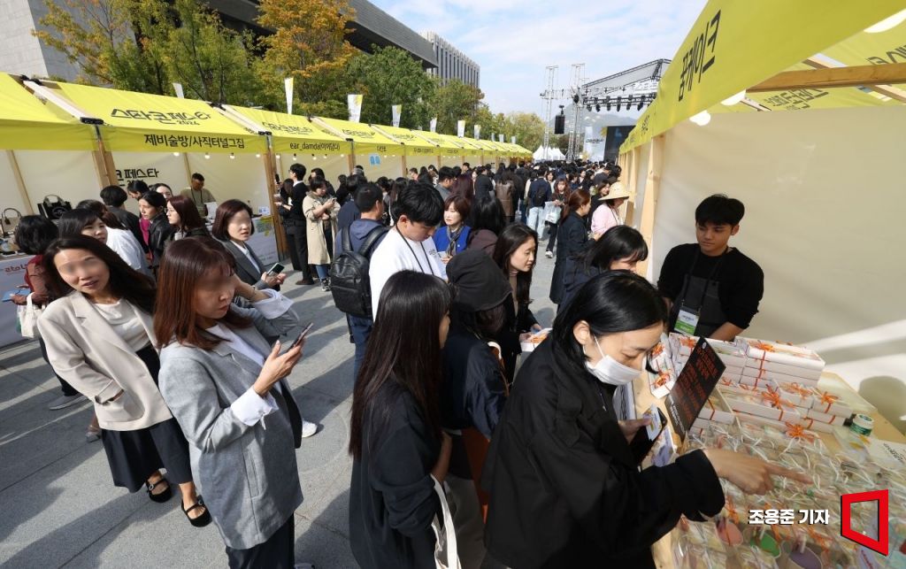 28일 서울 광화문광장 놀이마당에서 열린 '스타콘 페스타 2024'를 찾은 시민들이 소상공인의 우수 제품들을 체험 및 구매를 하고 있다. 31일까지 열리는 이번 행사는 기업가정신과 창의적인 아이디어를 보유한 스타 소상공인을 발굴해 글로벌 대기업으로 육성하는 민관 협력 프로젝트다.