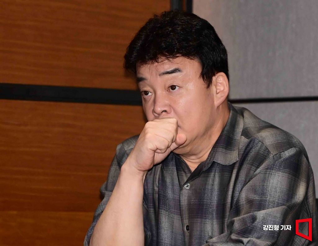 백종원 더본코리아 대표가 28일 오후 서울 여의도 콘래드호텔에서 열린 더본코리아 IPO 기자간담회에 참석하고 있다.