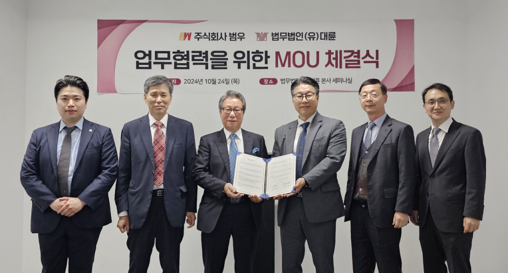 범우 김정봉 대표는 “풍부한 기업 법무 경험을 가진 대륜과의 협력은 사업 확장에 있어 든든한 지원군이 될 것으로 기대한다”며 “대륜과의 MOU 체결을 통해 국내를 넘어 해외까지 더 넓은 시장에서 경쟁력을 확보할 수 있을 것”이라고 기대감을 내비쳤다.
