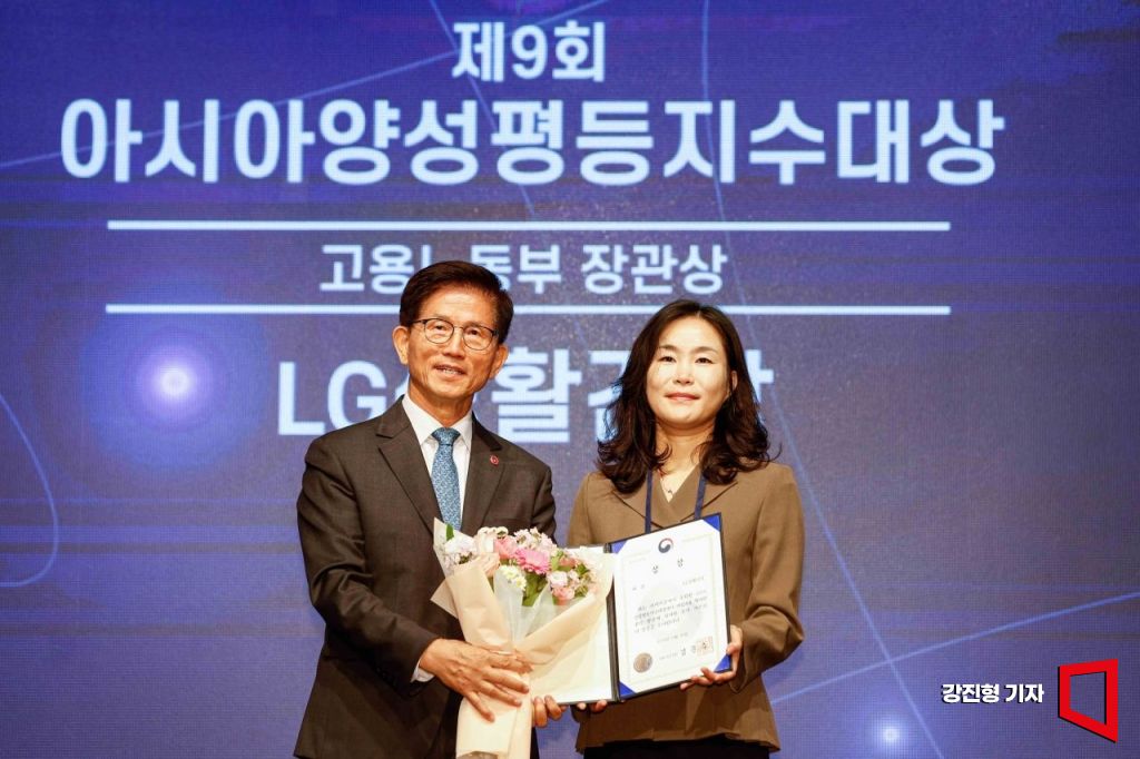 제9회 아시아양성평등지수대상 시상식에서 고용노동부 장관상을 받은 LG생활건강은 여성 인재가 경력 단절 없이 일과 육아를 병행할 수 있는 환경을 조성했다. 임신·육아기에는 근로시간 단축, 출퇴근 시간변경제, 가족돌봄휴가 등을 쓰도록 장려한다. 출산휴가는 90일(다태아 120일)로 임신질병 유급휴직, 연간 최대 600만원의 난임치료비를 지급한다. 영업장에는 직원들을 위한 어린이집과 수유시설을 설치했다.