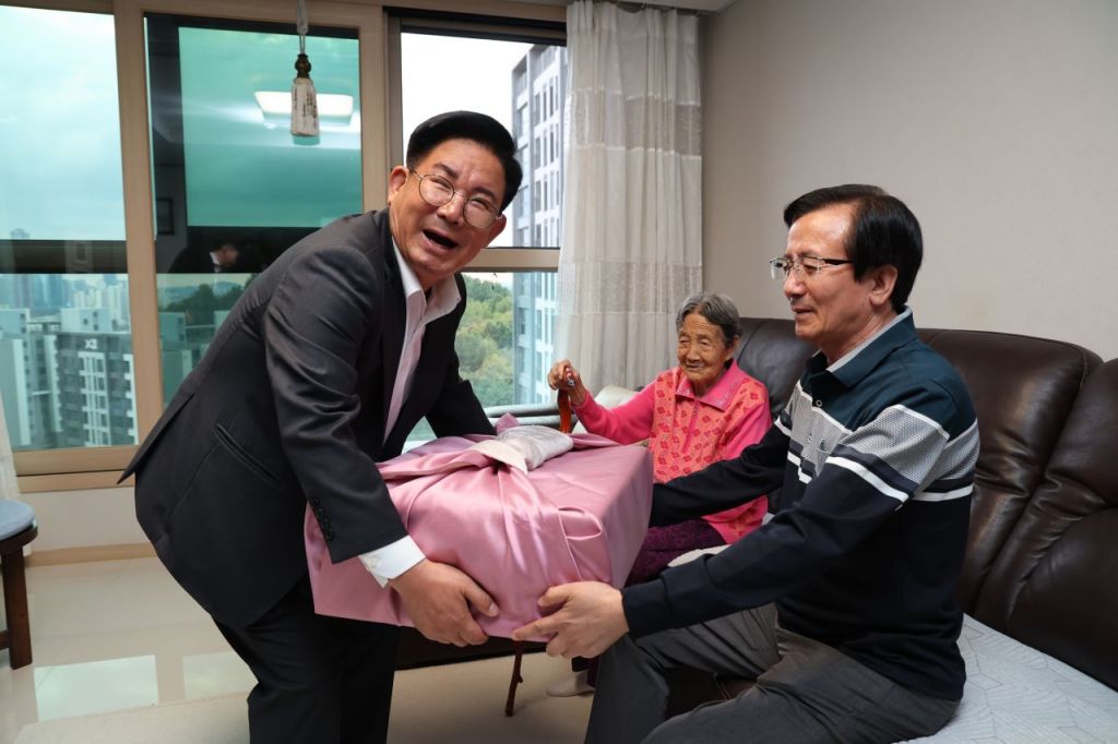 박강수 마포구청장은 10월 28일 오후 효(孝)의 달을 기념하여 100세 어르신을 부양하는 가정에 직접 방문해 격려품과 함께 격려의 말을 전했다.