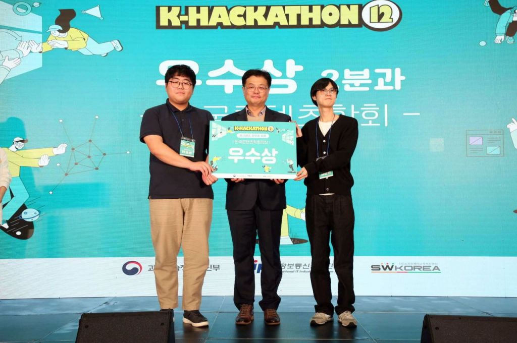 K-해커톤 대회는 국내 최대 규모의 해커톤 경진대회로 ‘전국적인 사회·공익문제와 지역의 특수성을 반영한 자유 주제’로 애플리케이션 솔루션 분과와 메타버스 플랫폼 활용 솔루션 분과 2개 부문으로 진행됐으며, 분과별 대상 2팀에는 과학기술정보통신부 장관상과 상금 300만원이 주어지는 등 총 1700만원의 상금이 주어졌다.