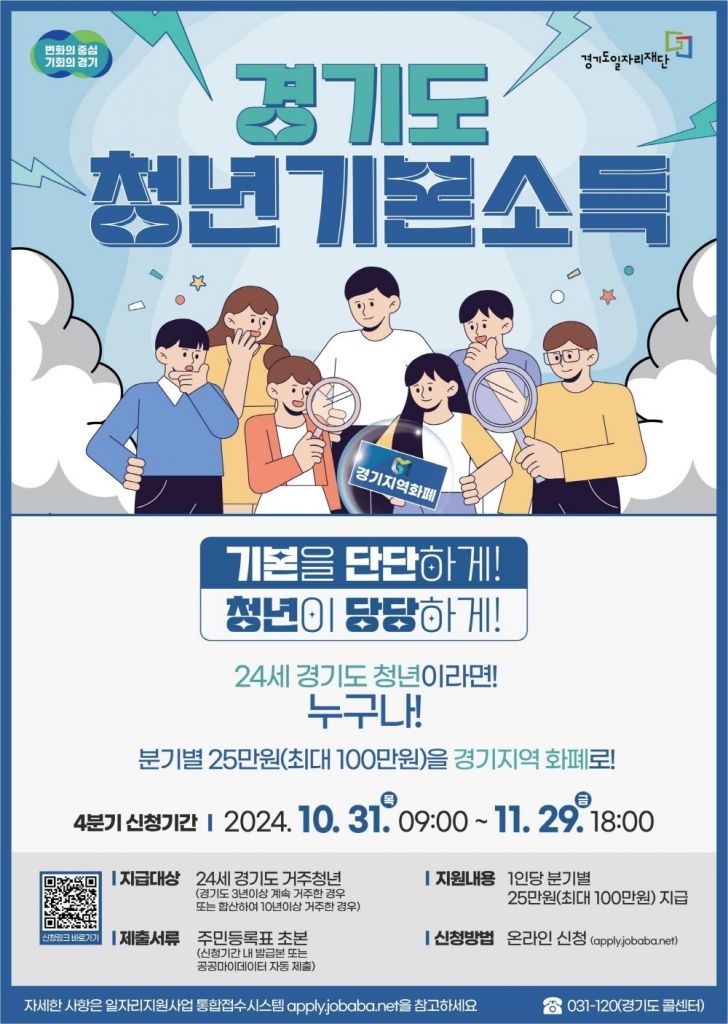 4분기 지급대상자는 1999년 10월 2일부터 2000년 10월 1일생으로 일자리플랫폼 잡아바 통합접수시스템에서 신청기간 내 발급한 주민등록초본(또는 공공마이데이터 기능을 활용하여 초본 자동제출)을 첨부해 신청하면 심사 후 12월 20일부터 순차적으로 지급된다.