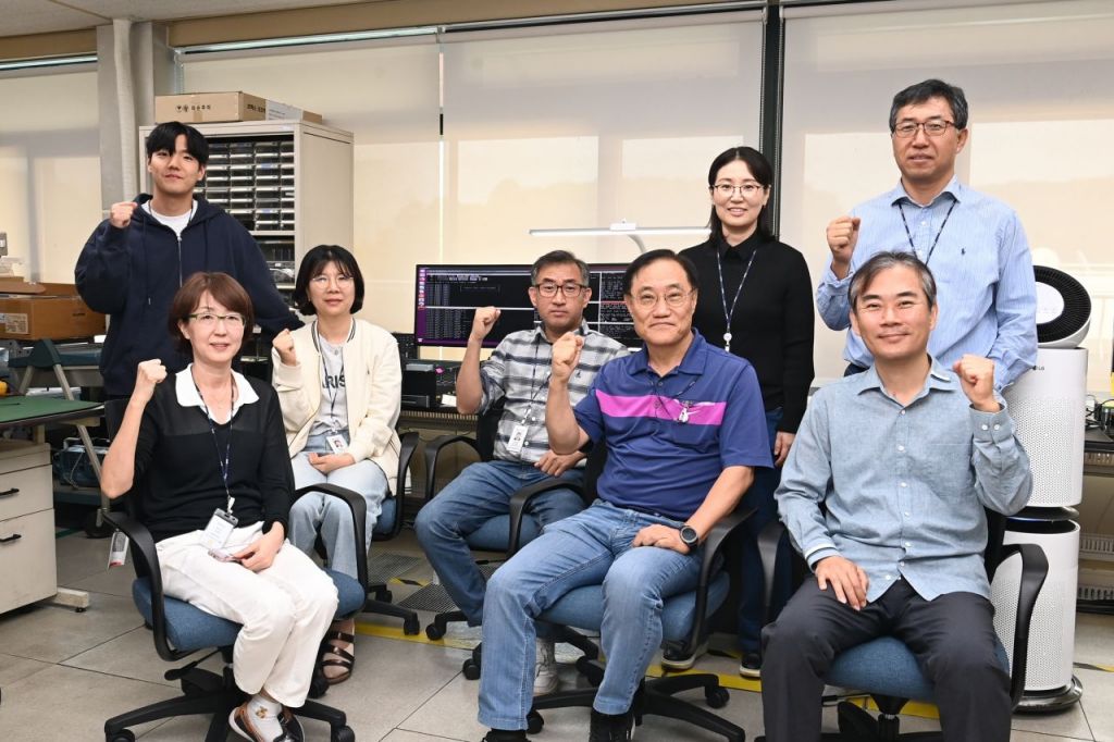 국내 최초 슈퍼컴퓨터용 가속기 칩과 계산노드를 개발한 연구진이 기념촬영을 하고 있다. 사진제공=한국전자통신연구원