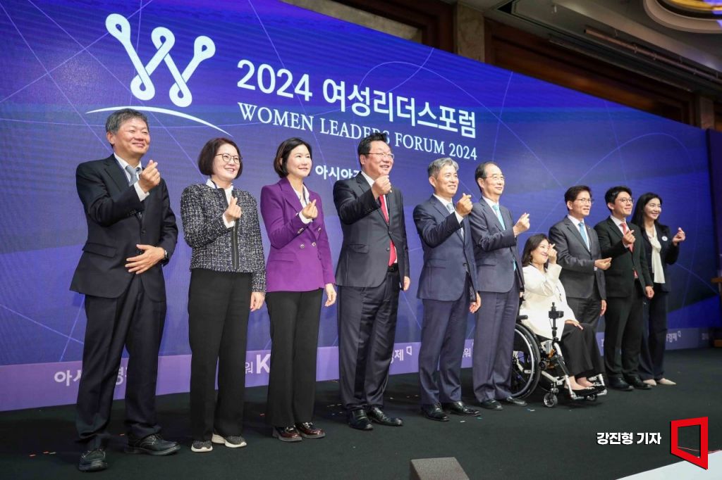 현상순 아시아경제 회장과 한덕수 국무총리를 비롯한 주요 내빈들이 30일 서울 중구 롯데호텔에서 아시아경제 주최로 열린 ‘2024 여성리더스포럼’에 참석해 기념촬영 하고 있다. 왼쪽부터 우병현 아시아경제 대표, 이인실 한반도미래인구연구원장, 이은미 토스뱅크 대표, 주형환 저출산고령사회위원회 부위원장, 현상순 아시아경제 회장, 한덕수 국무총리, 최보윤 국민의힘 의원, 김문수 고용노동부 장관, 김병민 서울시 정무부시장, 박정숙 서울시여성가족재단 대표.