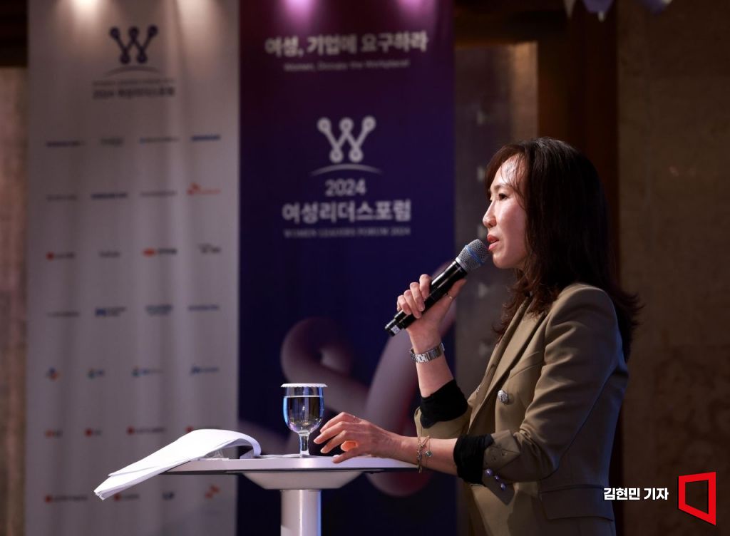 정유정 작가가 30일 서울 중구 롯데호텔에서 아시아경제 주최로 열린 2024 여성리더스포럼에서 '인간 최후의 욕망, 야성을 찾아서'를 주제로 특별강연하고 있다.