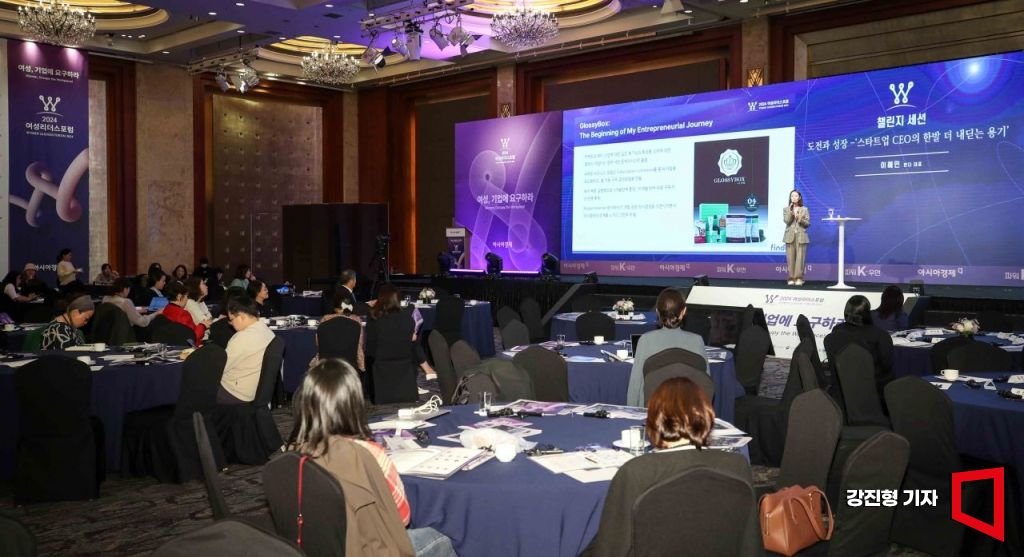 이혜민 핀다 대표가 30일 서울 중구 롯데호텔에서 아시아경제 주최로 열린 ‘2024 여성리더스포럼’에 참석해 도전과 성장을 주제로 강연 하고 있다.