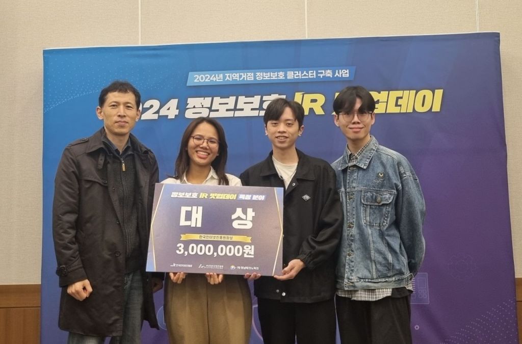 동명대 항만물류시스템학과 조규성 교수는 유일하게 외국인들로 구성한 학과 대학원생팀이 지난 29일 ‘2024 정보보호 IR 및 업데이대회’에서 학생 부문 대상(한국인터넷진흥원상)과 상금 300만원을 받았다고 30일 전했다.