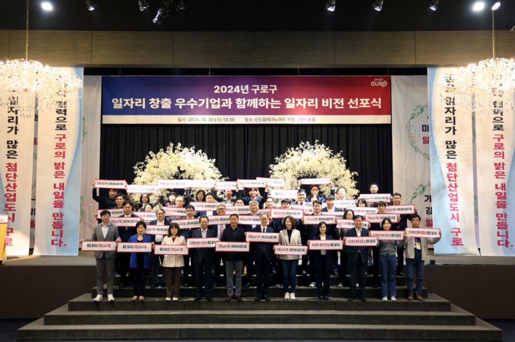 구로구가 지난 30일 신도림테크노마트에서 일자리박람회, 일자리 창출 우수기업 인증서 수여식과 함께 ‘2024년 구로구 일자리 비전 선포식’을 개최했다.