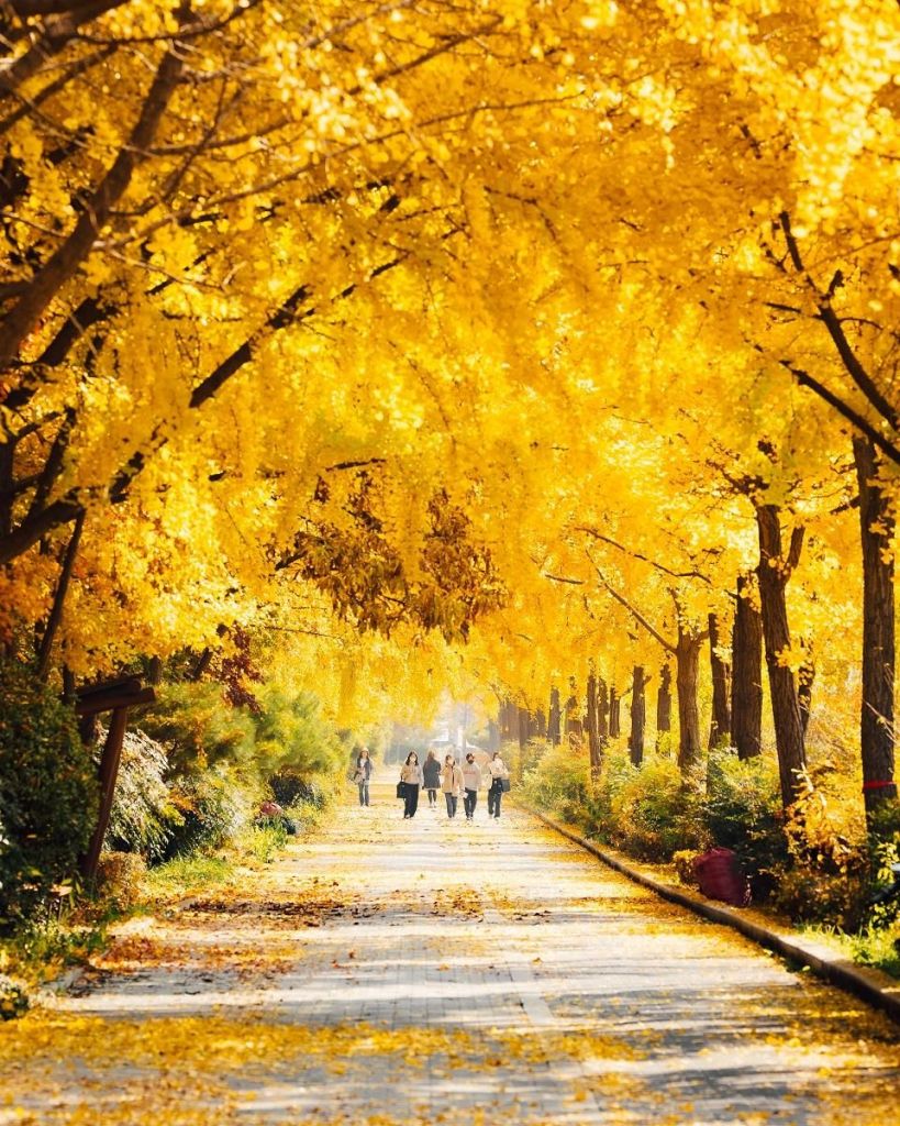위례성길에 도착하면 “와”하는 환호성이 저절로 터진다. 올림픽공원 평화의 문에서 남 2문까지 이어지는 약 2.7km 보도 양쪽 길을 따라 길게 뻗은 은행나무 가로수길이 펼쳐지기 때문이다. 매년 11월이면 아름드리 은행나무가 만들어 낸 황금빛 터널이 평생 잊을 수 없는 절경을 선사한다.