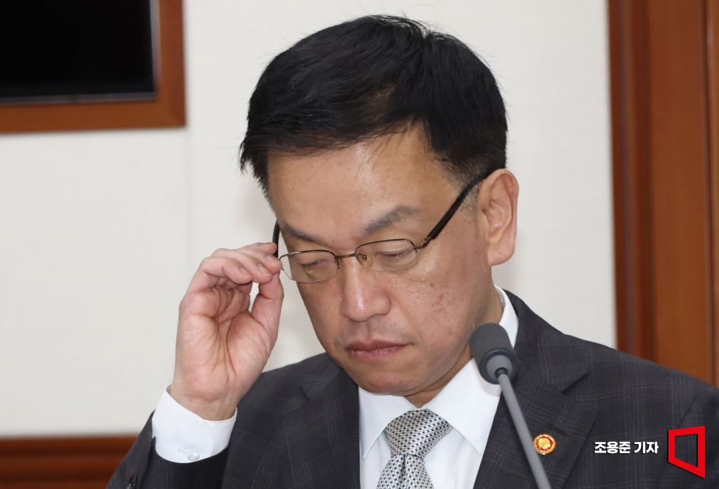 최상목 경제부총리 겸 기획재정부 장관이 7일 정부서울청사에서 열린 경제관계장관회의 겸 대외경제장관회의에 참석해 자료를 살피고 있다. 이날 회의에서는 미 대선 결과 대응 및 한-미 주요 통상 현안 대응 방안에 대한 논의가 진행됐다.