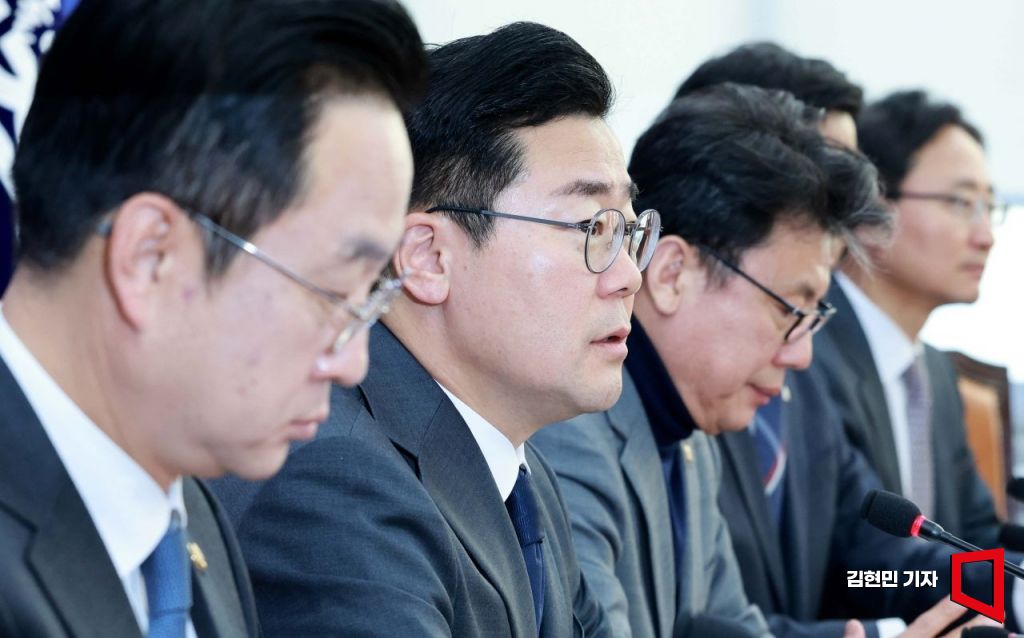 박찬대 더불어민주당 원내대표가 7일 국회에서 열린 정책조정회의에서 발언하고 있다.