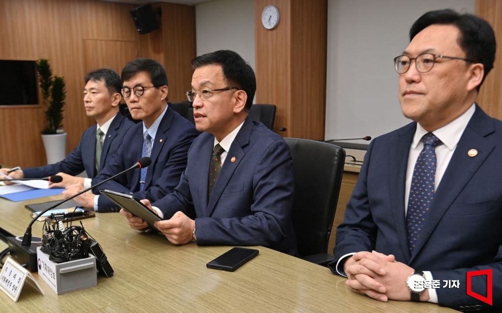 최상목 경제부총리 겸 기획재정부 장관이 8일 서울 여의도 수출입은행에서 열린 거시경제금융회의에 참석, 미 대선, FOMC 결과 및 국제금융시장 동향에 대해 발언하고 있다. 왼쪽부터 이복현 금융감독원장, 이창용 한국은행 총재, 최 부총리, 김병환 금융위원장.