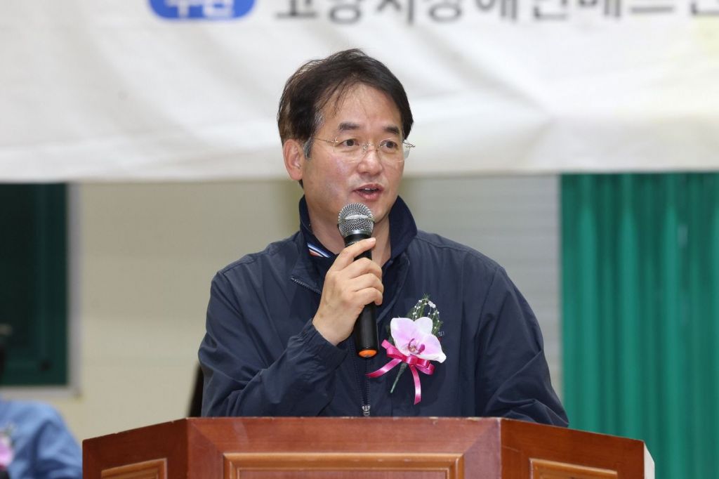이동환 고양특례시장이 9일 열린 '제6회 고양특례시장배 장애인 배드민턴대회'에 참석해 축사를 하고 있다. 고양특례시 제공