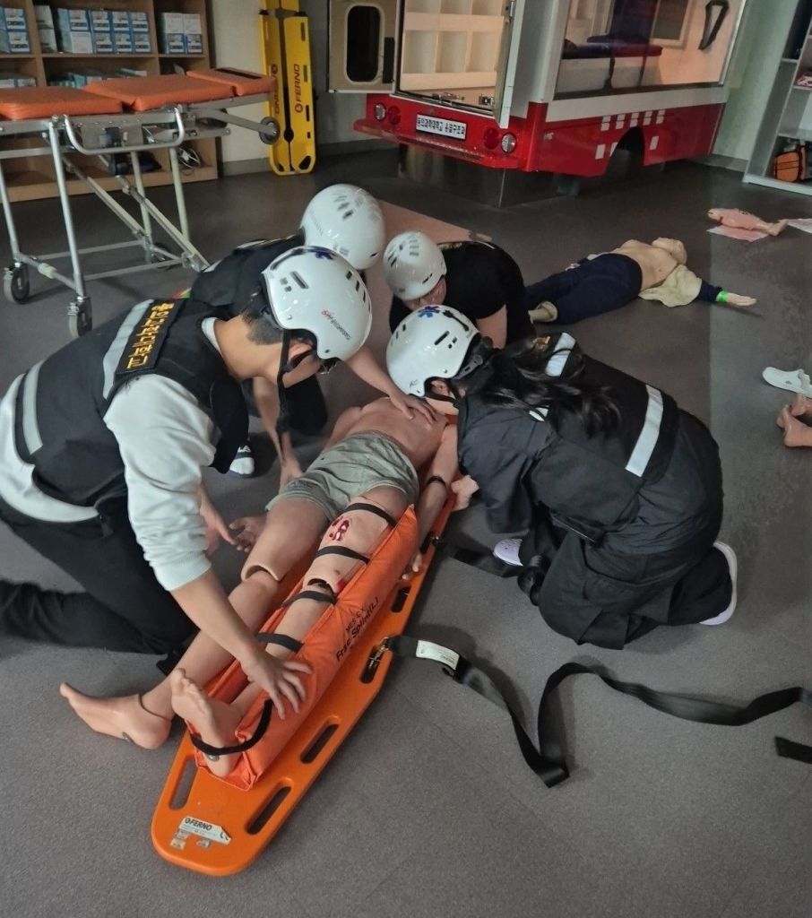 참가한 학생들은 사고 현장에서 중증 환자와 경증 환자를 신속히 분류하고 구조와 이송 절차를 수행한 뒤 최종적으로 응급실에 인계하는 전 과정을 실습하며 응급구조사의 역할을 경험했다. 학생들은 팀 단위로 배치돼 실제 응급의료체계에서의 역할을 체험하고 진로 설계에 필요한 역량을 강화하는 기회를 가졌다.