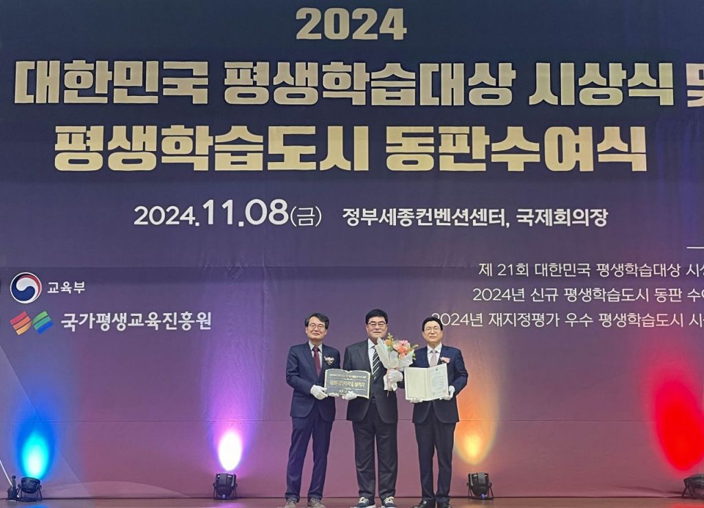 삼척시는 교육부와 국가평생교육진흥원에서 실시한 2024년(2주기) 평생학습도시 재지정평가를 통과하고 '우수 평생학습도시’로 선정되어 지난 8일 정부세종컨벤션센터에서 열린 2024년 재지정평가 우수 평생학습도시 시상식에서 교육부장관 기관 표창을 받았다.