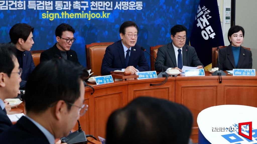 이재명 더불어민주당 대표가 11일 국회에서 열린 최고위원회의에서 발언하고 있다.