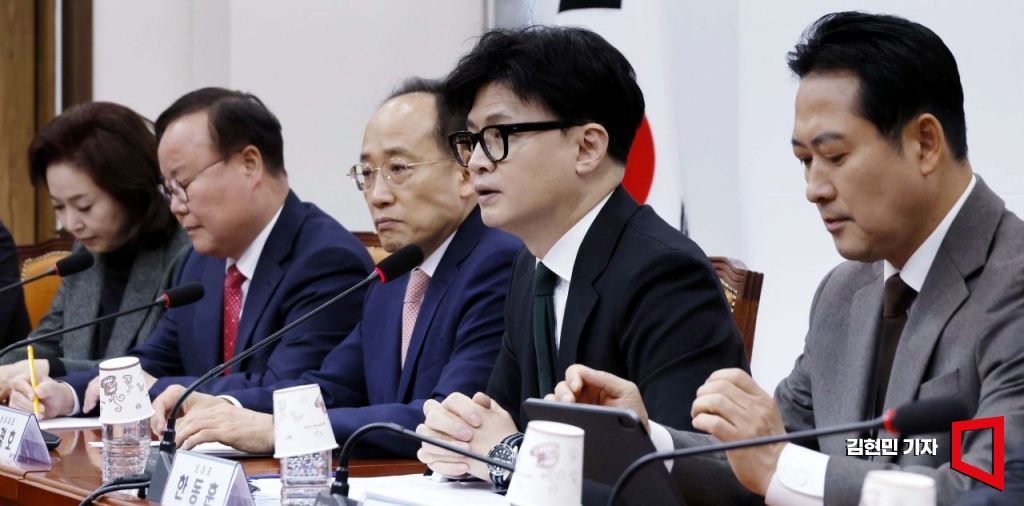 한동훈 국민의힘 대표가 11일 국회에서 열린 최고위원회의에서 발언하고 있다.