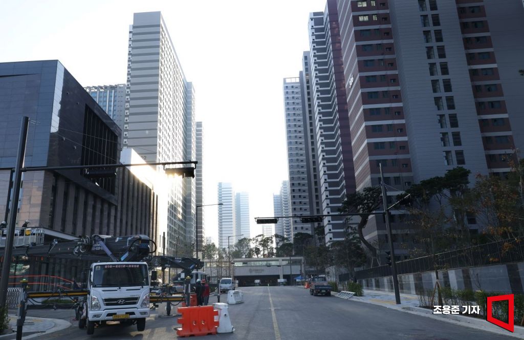 내달 입주를 앞두고 공사비 갈등이 심화해 공사가 멈췄던 서울시 강동구 둔촌동 '올림픽파크포레온' 사업이 다시 시작된 25일 강동구 올림픽파크포레온 사업현장에서 관계자들이 공사를 하고 있다. 사진=조용준 기자