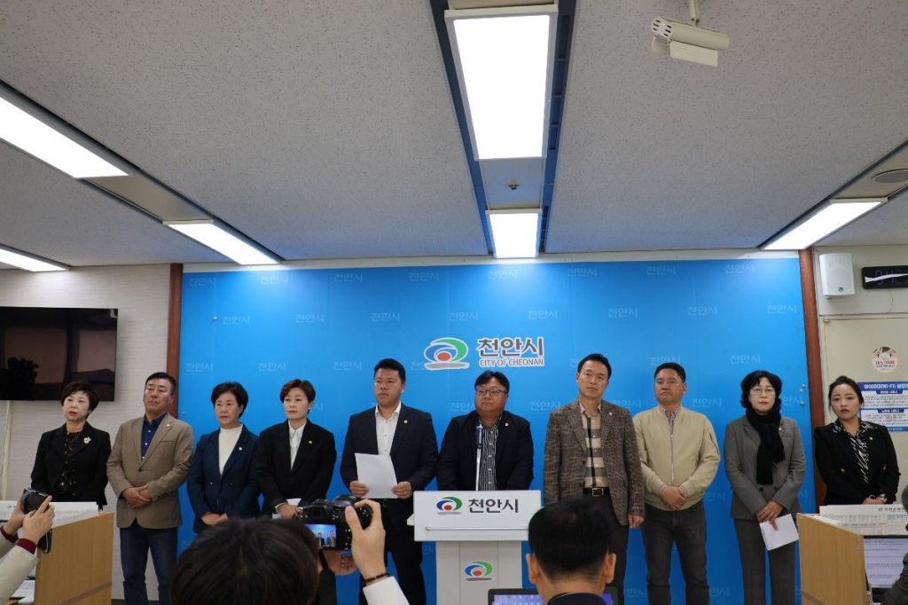충남 천안시의회 더불어민주당 의원들이 11일 천안도시공사 사장 임용과 관련해 인사청문회 실시를 촉구했다.