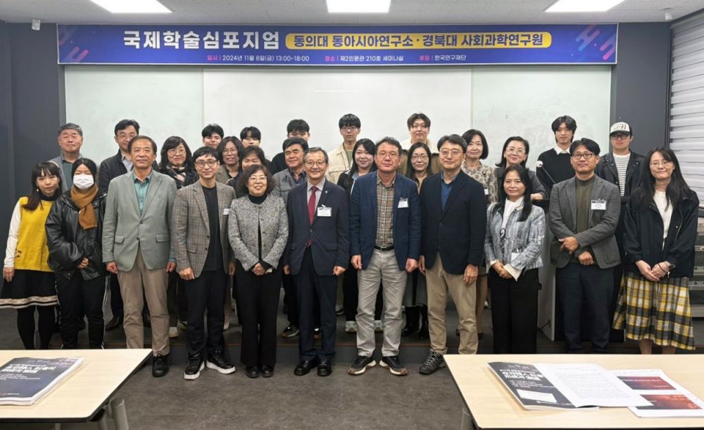 동의대 동아시아연구소-경북대 사회과학연구원 국제학술 심포지엄을 개최하고 기념촬영하고 있다.