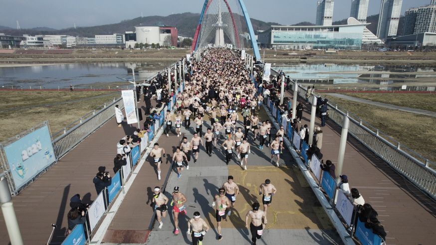 ‘선양 맨몸마라톤’은 시작을 의미하는 숫자 ‘1’을 강조해 매년 1월 1일 오전 11시 11분 11초에 출발해 대전 갑천변 7㎞를 맨몸으로 달리는 축제다.