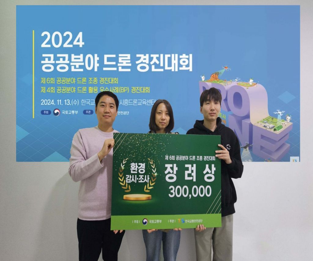 광주시 디지털정보담당관 지능정보팀 이수연, 손병오, 오구환 주무관이 ‘제6회 공공분야 드론 조종 경진대회’에 참가해 환경·감시 분야에서 장려상을 수상하고 있다. 경기 광주시 제공