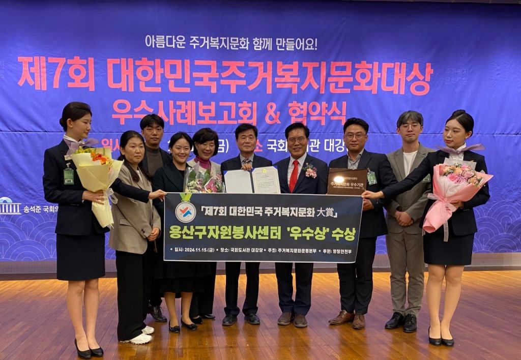 서울 용산구(구청장 박희영)가 위탁 운영 중인 용산구 자원봉사센터는 지난 15일 제7회 ‘대한민국주거복지문화대상’ 기관·단체 부문에서 우수상을 수상했다고 17일 밝혔다.