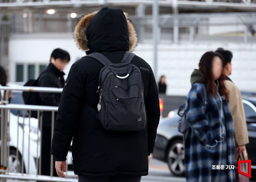 서울 영하 2도를 비롯해 전국 곳곳에 한파특보가 내려진 18일 서울 광화문네거리에 두툼한 복장을 한 시민들이 출근길을 서두르고 있다.