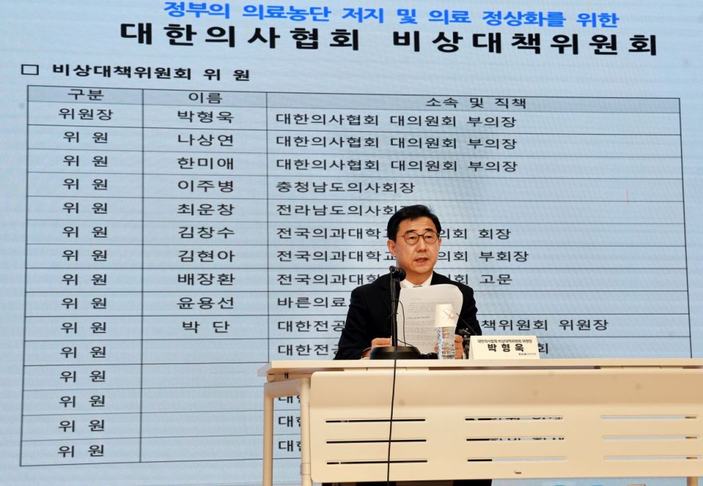 대한의사협회 비상대책위원회 박형욱 위원장이 18일 대한의사협회에서 기자회견을 열고 비대위 출범을 선언하며 15인의 비대위원 구성과 정부에 대한 요구사항 등을 이야기했다.