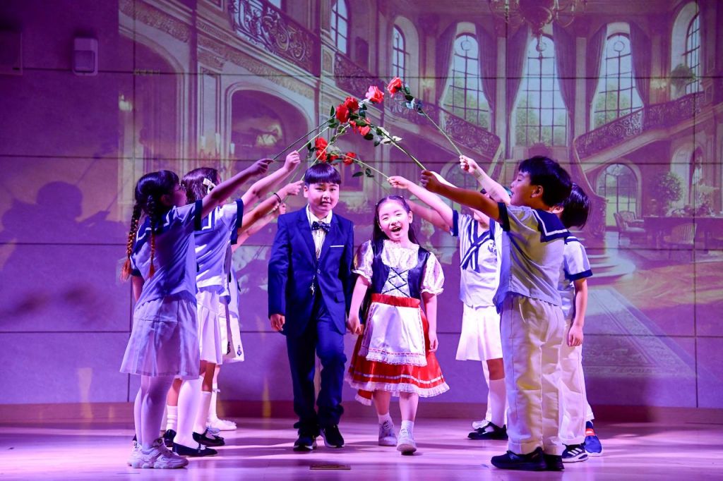 올해 2월 개관한 '화천커뮤니티센터'에서 초등 온종일 돌봄교실에 참여하는 학생들이 지난 8월 영어뮤지컬 발표회를 갖는 장면. 사진=화천군청 제공