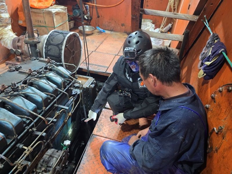 서해청 소속 기동대원이 중국 어선 선내에서 검문검색을 실시하고 있다. 서해지방해양경찰청 제공