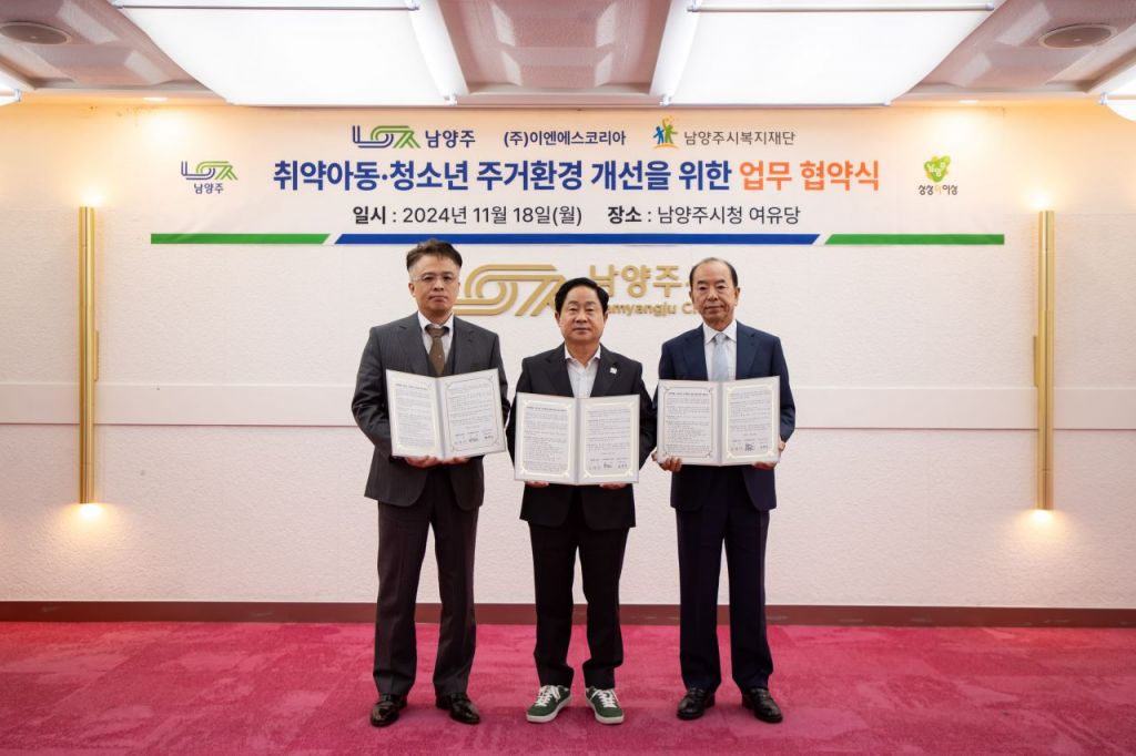 경기 남양주시(시장 주광덕)는 18일 ㈜이엔에스코리아 및 남양주시복지재단과 함께 취약 아동·청소년의 주거환경 개선을 위한 업무협약을 체결하며 사업의 시작을 알렸다.