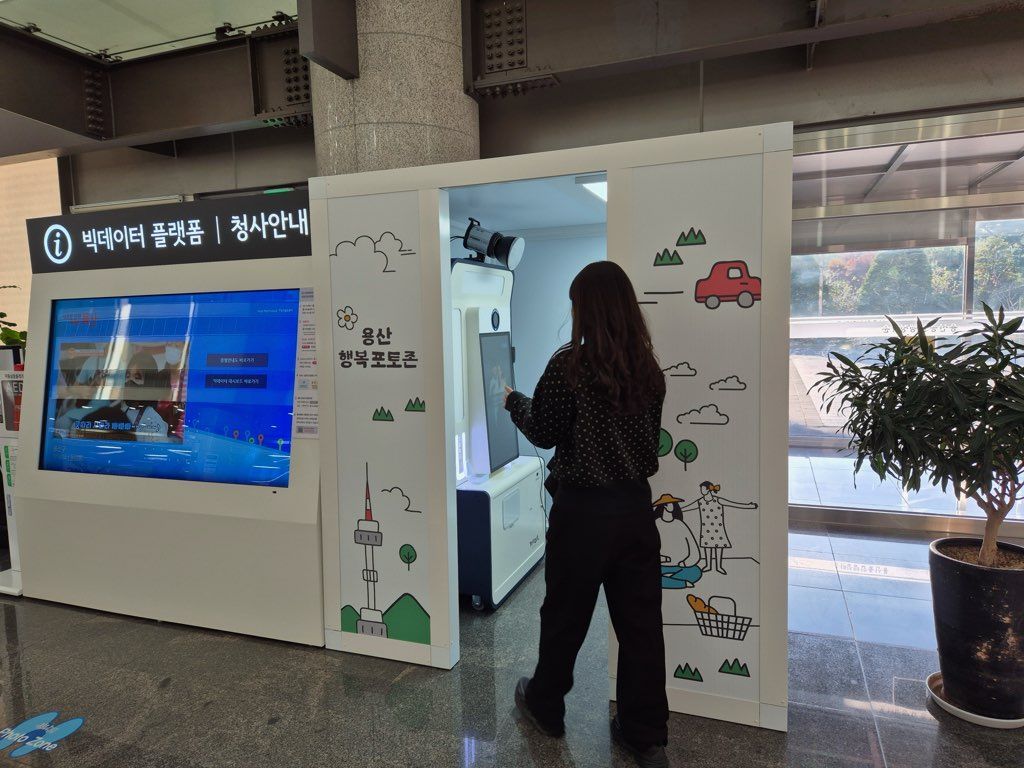 민원인이 용산행복포토존을 이용 중인 모습. 용산구 제공.