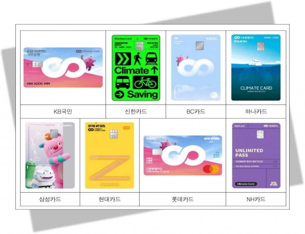 카드사별 후불 기후동행카드 대표 디자인. 서울시 제공