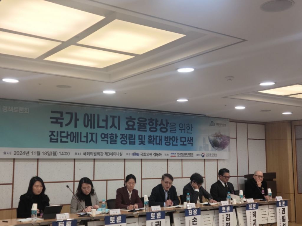 18일 서울 여의도 국회의원회관에서 열린 '국가에너지 효율 향상을 위한 집단 에너지 역할 정립 및 확대 방안 모색' 정책 토론회에서 토론자들이 발언하고 있다.(2024.11.18) 강희종 기자