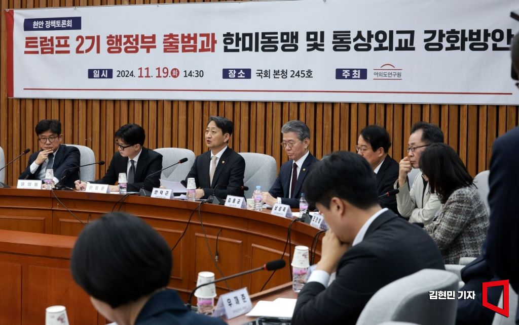 안덕근 산업통상자원부 장관이 19일 국회에서 열린 '트럼프 2기 행정부 출범과 한미동맹 및 통상외교 강화 방안 긴급 정책토론회'에서 발언하고 있다.