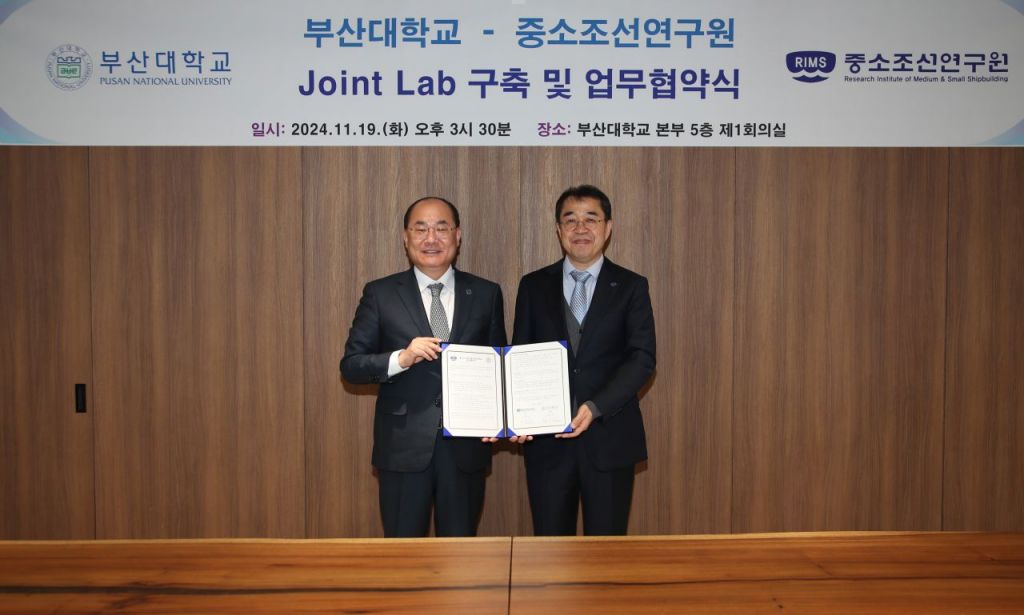 부산대학교와 중소조선연구원은 동남권역 주력 산업인 기계·조선·방위산업 분야 스마트화를 위한 장비 공동활용과 기술개발 협력을 위한 업무협약을 19일 오후 부산대 대학본부에서 체결했다.
