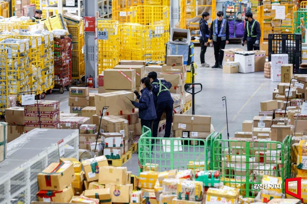 연중 최대 규모 해외직구 쇼핑 축제인 미국 블랙프라이데이를 앞두고 본격적인 세일이 시작된 20일 인천 중구 인천공항본부세관 특송물류센터에서 세관 직원들이 직구물품들을 확인하고 있다.