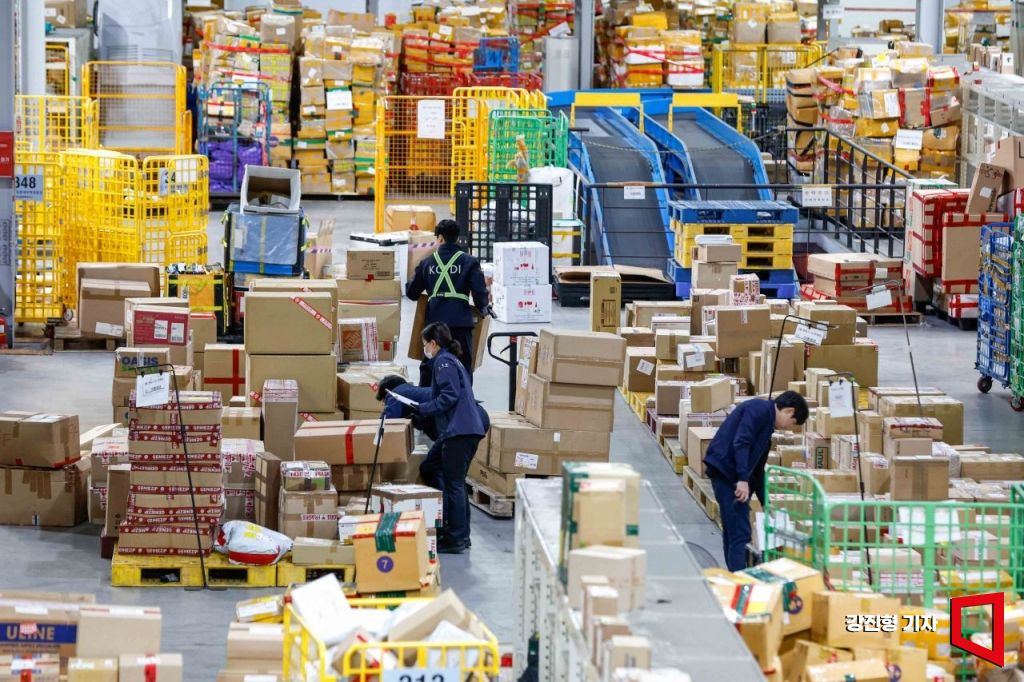 연중 최대 규모 해외직구 쇼핑 축제인 미국 블랙프라이데이를 앞두고 본격적인 세일이 시작된 20일 인천 중구 인천공항본부세관 특송물류센터에서 세관 직원들이 직구물품들을 확인하고 있다.
