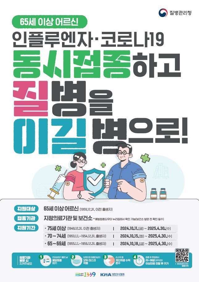 어르신 독감·코로나19 예방접종은 내년 4월 30일까지 가능하나, 최적의 예방효과를 위해 11월 중 백신을 접종할 것을 권장한다.