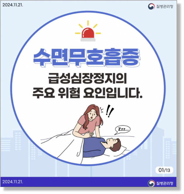 지영미 질병청장은 "수면무호흡증은 단순한 수면 문제를 넘어서 급성심장정지의 위험을 높이는 주요 위험 요인으로 그 위험성을 인식하고 진단 및 치료를 받는 것이 중요하다"며 "특히 비만이나 흡연, 고혈압 등은 수면무호흡증의 원인으로 작용할 수 있으므로 적절한 건강관리를 통해 금성심장정지를 예방할 수 있기를 바란다"고 말했다.
