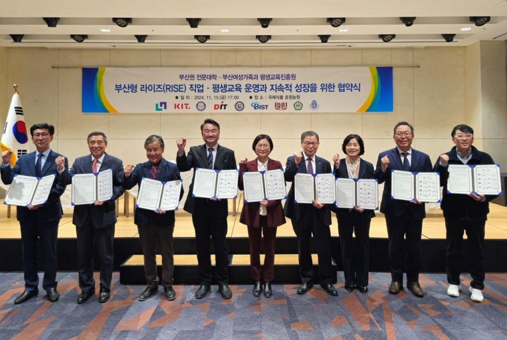 한국전문대학교육협의회장이자 부산권 전문대학 총장 회장인 김영도 총장(동의과학대학교 총장)은 지난 15일 국제식품 초원농원에서 부산권 전문대학 8개교(경남정보대학교, 대동대학교, 동의과학대학교, 부산경상대학교, 부산과학기술대학교, 부산보건대학교, 부산여자대학교, 부산예술대학교)와 부산여성가족과 평생교육진흥원 간 ‘부산형 라이즈(RISE) 직업·평생교육 운영과 지속적 성장을 위한 협약’을 체결했다고 20일 전했다.