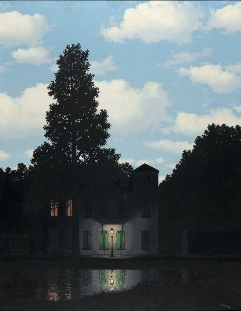 '빛의 제국'은 밤 풍경과 대낮 푸른 하늘의 조합이라는 초현실적 상황을 담아낸 작품이다. 익숙한 풍경처럼 보이지만 자세히 바라보면 낮과 밤이 공존해 실재하지 않는 장면을 담아냈다. 이 작품은 마그리트가 '빛의 제국'이라는 이름으로 그린 17개 작품 중 가장 큰 크기다.