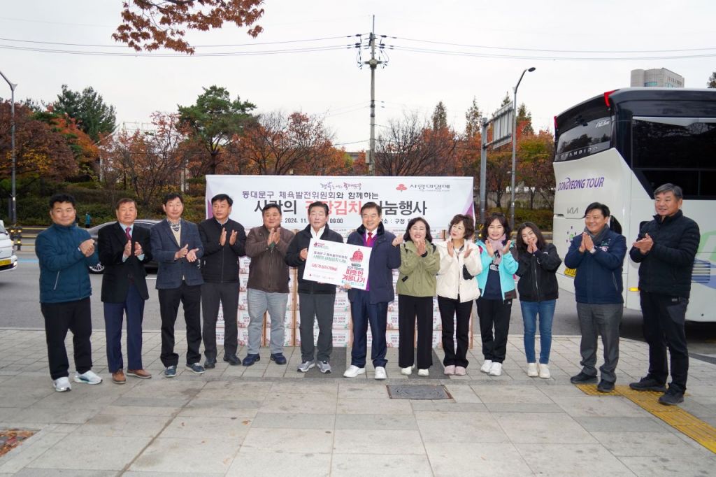 동대문구(구청장 이필형)는 20일 오전 동대문구 체육발전위원회와 함께 ‘따뜻한 겨울나기 사랑의 김장김치 기탁식’을 개최했다고 밝혔다.