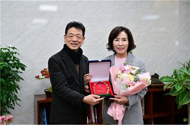 이숙자 위원장은 이날 서울시 곤충산업 발전에 기여한 공로를 인정받아 서울시곤충산업연구회가 수여하는 감사패를 서울농업기술센터 소장으로부터 전달받았다.