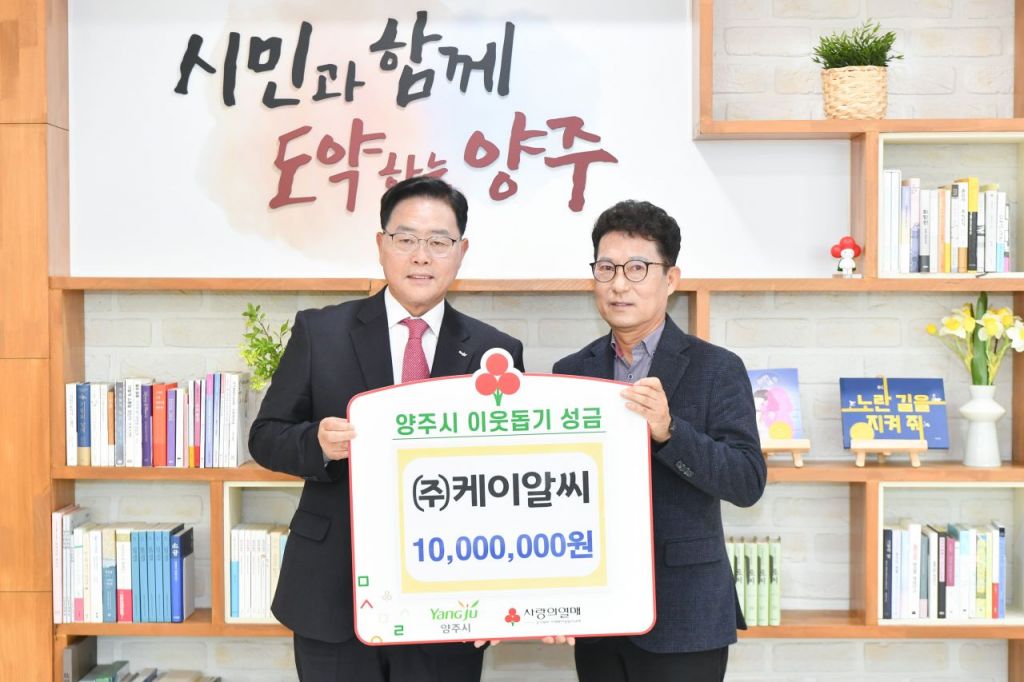 강수현 양주시장은 기부를 진행해주신 ㈜케이알씨에게 큰 감사를 전하며 “전달해주신 성금을 소중히 전달하여 어려운 이웃에게 희망이 되도록 최선을 다하겠다”고 말했다.