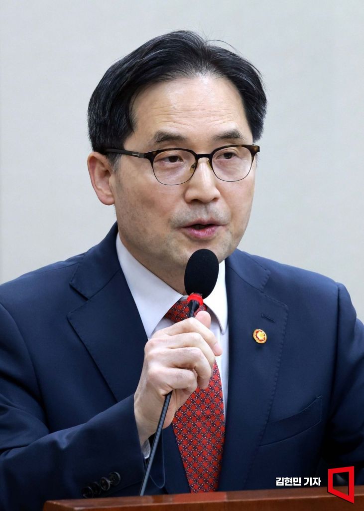 한기정 공정거래위원장이 12일 국회에서 열린 정무위원회 전체회의에서 예산안 관련 제안설명을 하고 있다. 김현민 기자